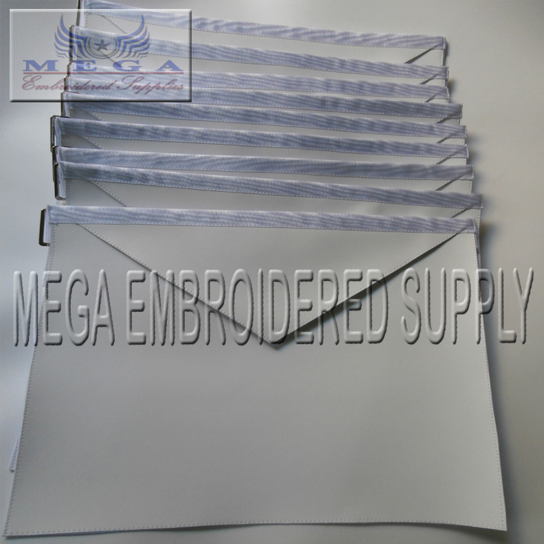 White Imitation leather apron size 32x38 top ribbon backing white fabric pocket for gloves belt and snake set
