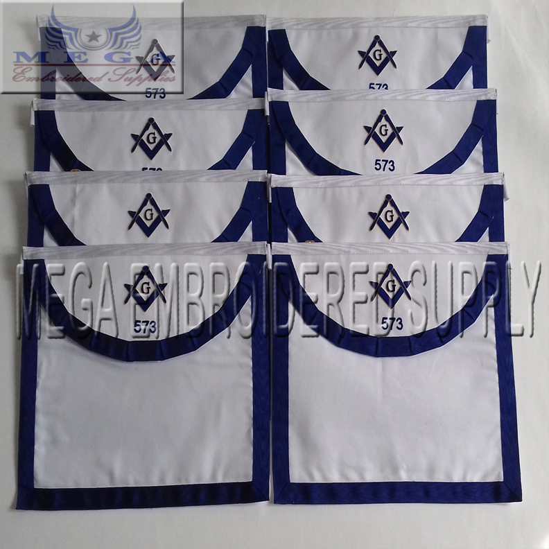 handmade Embroidered Masonic Symbol with letters round bib flap apron made of Cloth border blue ribbon