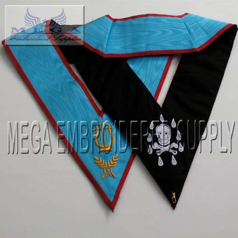 handmade Embroidered with Bullion wire threads on Blue ribbon border red backing black with Skull & tear printing with Metal Fastening hooks